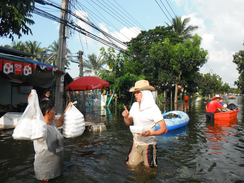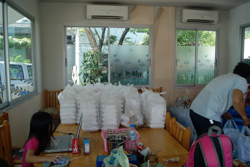 หลังจากส่งข้าวเสร็จแล้วก้ต้องไป เตรียมรับน้ำเข้าบ้านต่อไปเพราะ ทั้งหมดอยู่หมู่บ้านเดียวกัน ริมคลองภาษีเจริญ บางบอน