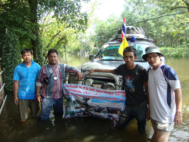 คณะคุณจอยขับฝ่าน้ำมาทางนครชัยศรี ซึ่งน้ำกำลังจะท่วมเช่นกัน มาถึงเรา 10 โมงเช้า