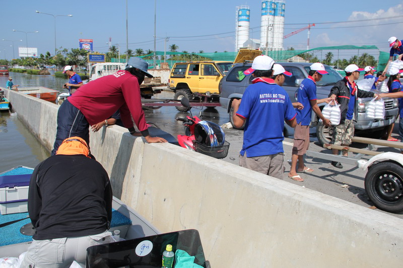 แจกถุงยังชีพและข้าวกล่อง กับผู้ประสบภัยน้ำท่วม อ.บางบัวทอง จ.นนทบุรี โดยมี ชุดเรือปฏิบัติการกู้ภัยเคลื่อนที่เร็วทางน้ำ WBC