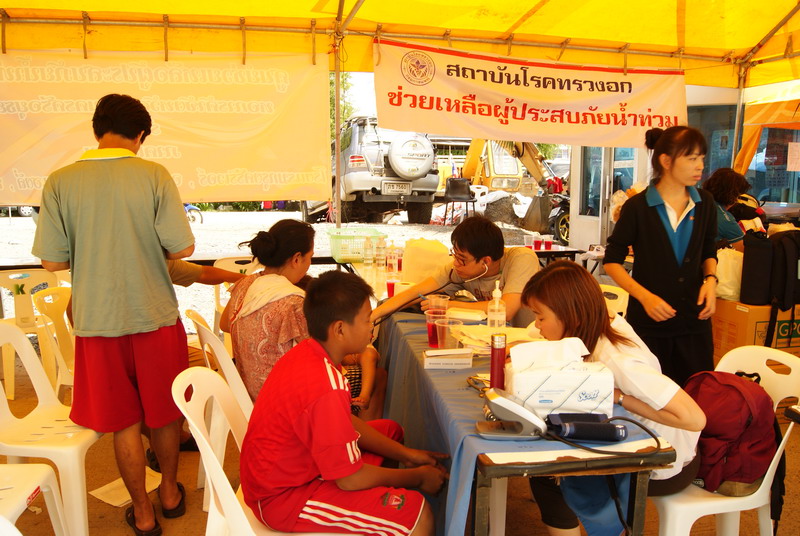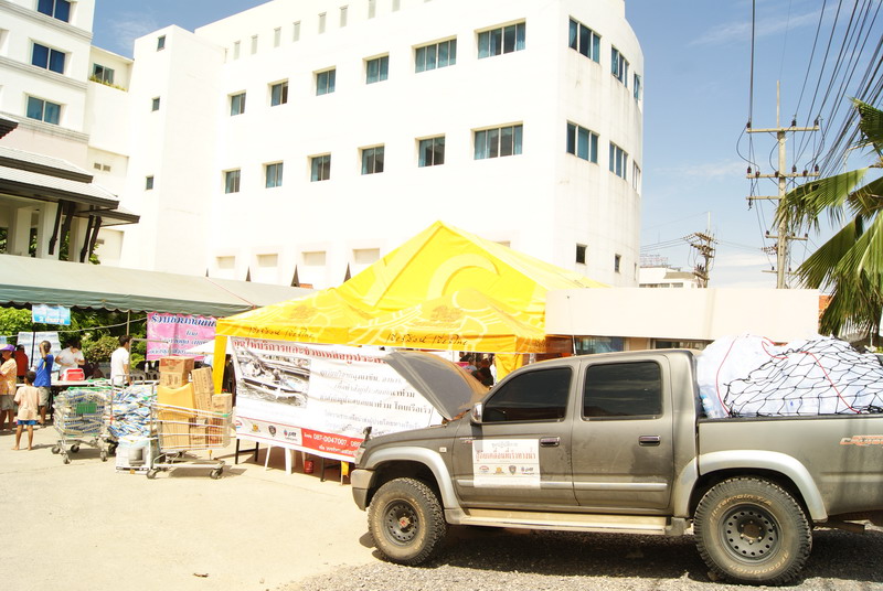วันนี้ เป็นวันเสาร์ มีหลายหน่วยงานมาช่วยตั้งเตนท์ให้บริการภายในลานจอดรถโรงแรม โดยความเอื้อเฟื้อโดย ส.ส.เกื้อกูล ด่านชัยวิจิต เจ้าของโรม และได้รับการสนับสนุน ถุงยังชีพ เช่น ธนาคารกรุงเทพ ธนาคารกสิกรไทย