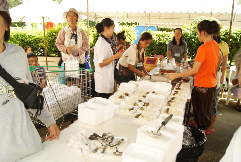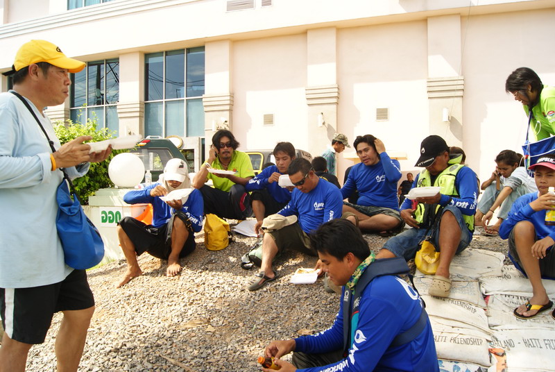 สนับสนุนข้าวกล่อง โดย คุณก่อกิจ ด่านชัยวิจิตร เจ้าของโรงแรมกรุงศรีวีเวอร์ไซค์ วันละ 2 หมื่น กล่อง ส่งลงเรือเพื่อแจกจ่ายไปทั่วตัวเมือง