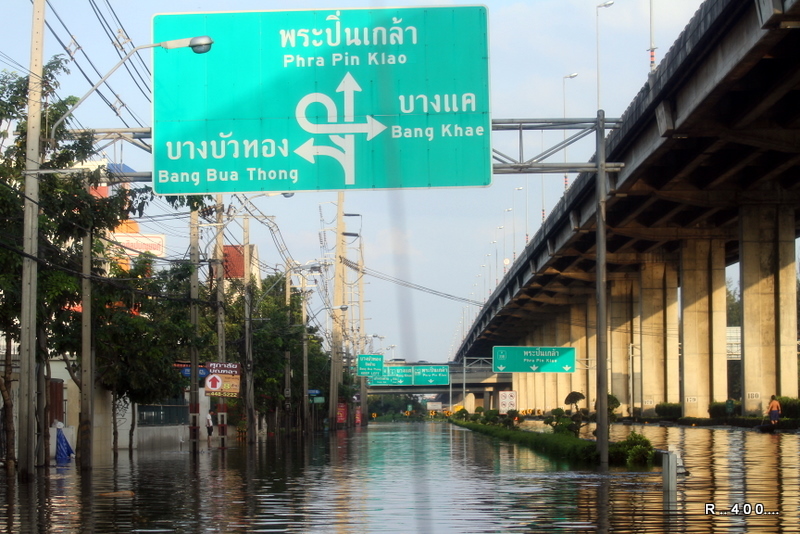 ป้ายบองเส้นทางคลองเลี้ยวซ้านคลองบางบัวทอง ตรงไปคลองปิ่นเกล้า ทางขวายังเป็นถนนอยู่ครับ