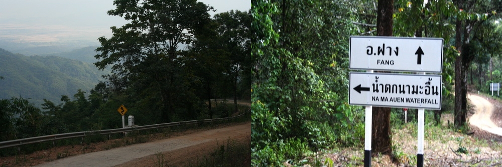 เส้นทางขึันบ้านเล็กในป่าใหญ่ - ดอยฟ้าห่มปก - น้ำตกนามะอื้น ป้ายที่ชี้ลงน้ำตกทางเป็นทางเดินเท้านะครับ รถมอไซค์ก็ไปได้แต่ต้องใช้ฝีมือหน่อย ตอนถ่ายรูปนี้ผมใช้ RGV แต่ยังไม่กล้าเสี่ยงเอารถไป กลัวกินข้าวลิง