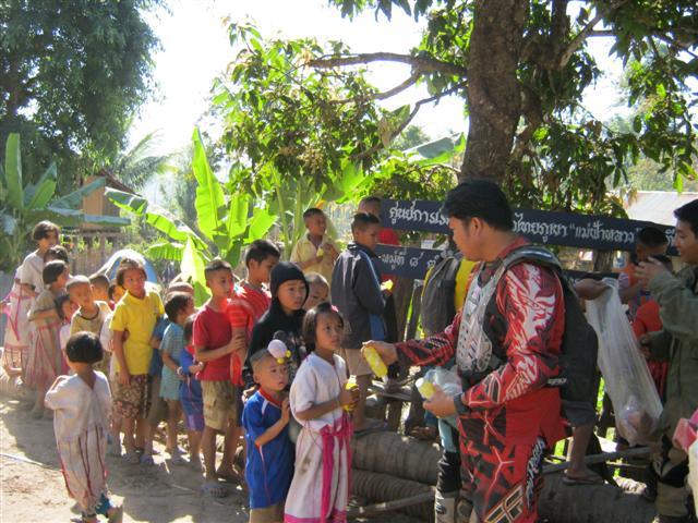 ระหว่างรอช่างเปลี่ยนยางรถเสี่ยหมีพวกเราก็แจกขนมเด็กครับ