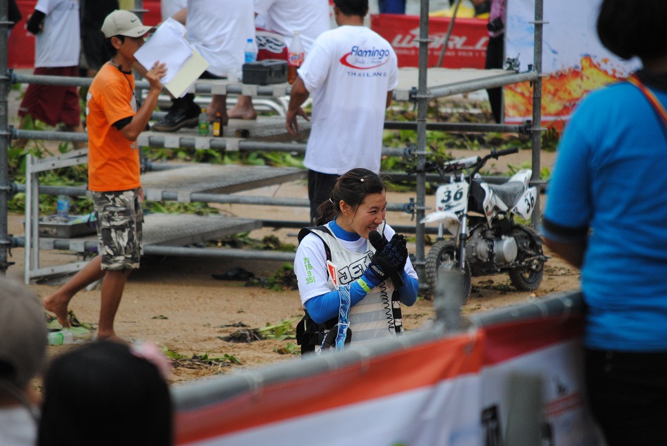 นักแข่งหญิงสาวชาวนครปฐม ลงแข่งรุ่น 800 SPORT กับนักแข่งชายระดับมืออาชีพ ในวันแรกเธอติดอันดับต้น ๆ เธอขึ้นนำ โชคอุทิศ โมลี ตาม ยังไม่สามารถแซงได้ครับ ผู้ชมเชียร์รอบสนาม สุดยอดครับ