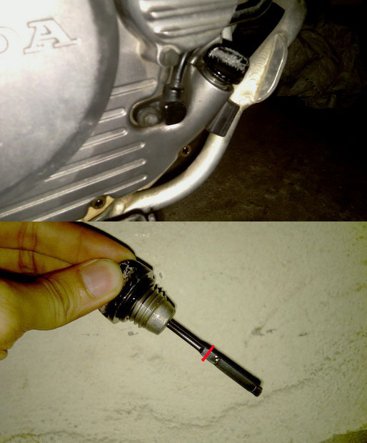 คราวนี้ก็เติม ไป ประมาณ 1.4-1.5 ลิตร ก็ยังเกิน full อยู่ดี ถ้าวัดแบบ A จุ่มไปสุดไม่หมุน เกิน full ไปหน่อยนึง ดัังภาพ
