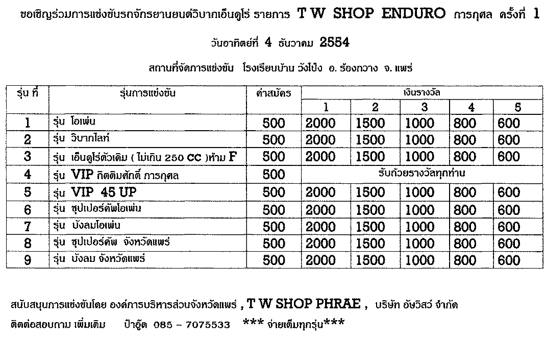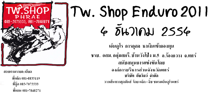 ...TW shop และชมรมแพร่เอ็นดูโร่ ยินดีต้อนรับเพื่อนนักแข่งทุกท่านครับผม..