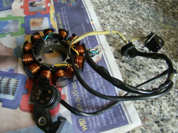 ปั่นมาเข้า regurator ก่อน จึงจ่ายไป กล่อง(dc cdi) และ อีกส่วนเข้า capasitor ไปใช้ไฟหน้ากับระบบไฟทั้งหมดครับ....