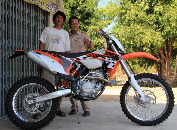 สวัสดีครับเพื่อนๆสมาชิกที่มีเจ้ากระเทียมเป็นยานพาหนะที่ใช้เดินทางท่องเที่ยวบนเส้นทางสายวิบาก ผมเองก็เพิ่งคบหาดูใจกับหล่อน แม่แหม่มร่างเล็กเพรียวบาง แต่กล้ามโต สาวชาวออสเตรียมาไม่นาน ทำให้ไม่ทราบว่าหล่อนมีข้อดี ข้อเสียที่ต้องปรับปรุงอย่างไรบ้าง เป็นธรรมดาครับไม่มีอะไรสมบูรณ์แบบไปหมด KTM เป็นบริษัทที่สร้างยานพาหนะเครื่อนย้ายมวลสารแบบพวกเราไปบนเส้นทางวิบากที่สุดยอดบริษัทหนึ่งในโลกใบนี้ ที่พยายามออกแบบและทำมอเตอร์ไชต์วิบากของตนเองออกมาให้ดีที่สุด สรรหาของแต่งที่เยี่ยมยอดจากแหล่งต่างๆใส่มาให้บนรถของตัวเองชนิดที่เรียกได้ว่า Ready to Race ตามสโลแกนของบริษัท กันเลยทีเดียว เอาเป็นว่าข้อเสียที่ต้องปรับปรุงหลังจากใช้งงาน น้องนาง KTM 530 XC-W Six days edition สักระยะหนึ่งจะมาเล่าแลกเปลี่ยนประสพการณ์ และการแก้ไข ให้มันมีความสมบูรณ์เหมาะสมกับการใช้งานของแต่ละคนยิ่งขึ้น แต่ที่รู้ๆกันอยู่ตอนนี้หล่อนมีช่วงล่างที่ดีมากๆ นุ่มหนึบดีจริงๆ