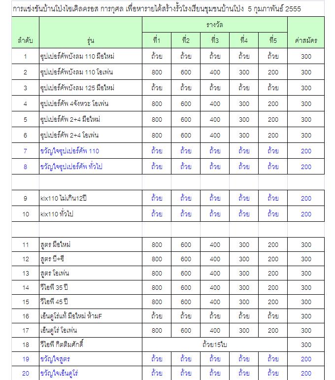 1.รุ่น 50cc.ถ้วยและเงินรางวัล