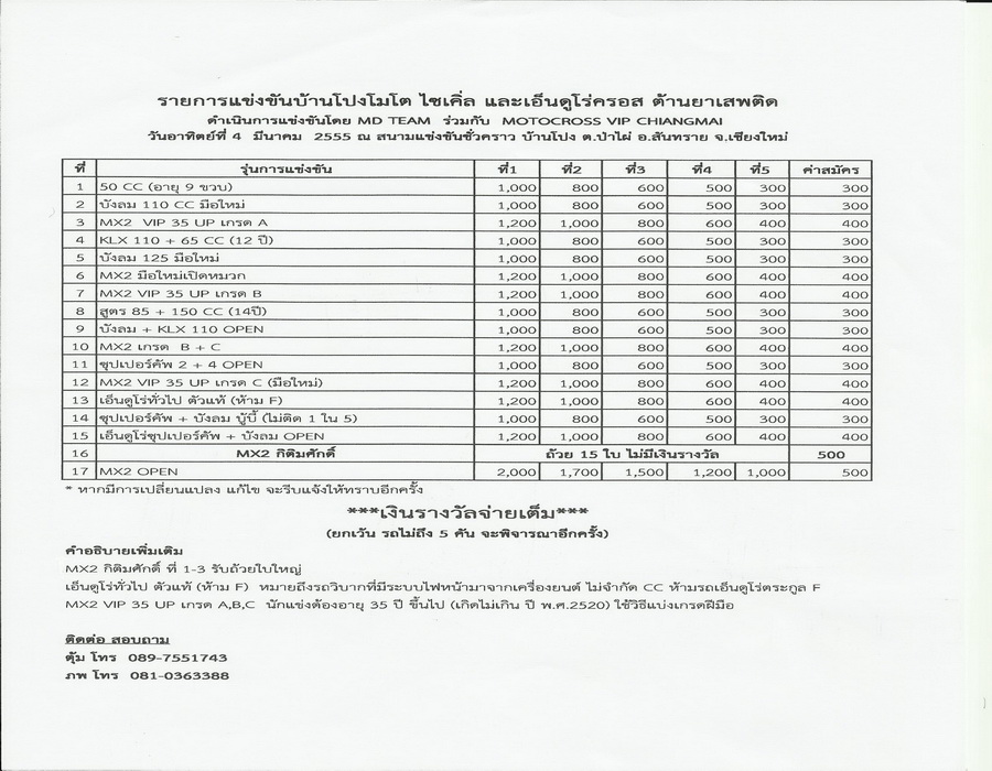 เชิญร่วมการแข่งขันบ้านโปง โมโต ไซเคิล และเอ็นดูโร่ครอส หลังมหาวิทยาลัยแม่โจ้ อำเภอสันทราย จังหวัดเชียงใหม่ รายได้สมทบกองทุนแม่ของแผ่นดินชุมชนบ้านโปง สนับสนุนโดย เทศบาลตำบลป่าไผ่ ชุมชนบ้านโปง md team และ vip motocross chiangmai