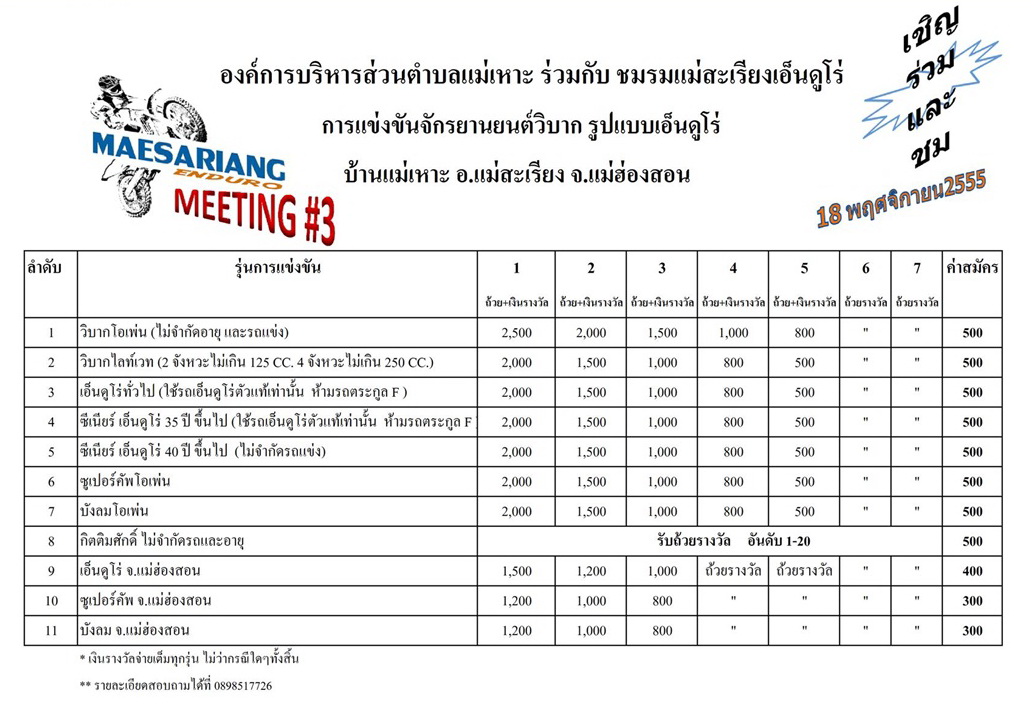18 พฤศจิกายน 55. แม่สะเรียงเอ็นดูโร่ เชิญร่วมการแข่งขัน