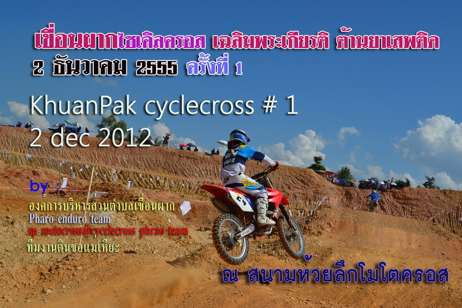 เชิญนักแข่งทุกท่าน ร่วมการแข่งขันไซเคิลครอสต่อต้านยาเสพติด วันที่ 2ธันวาคม 25555