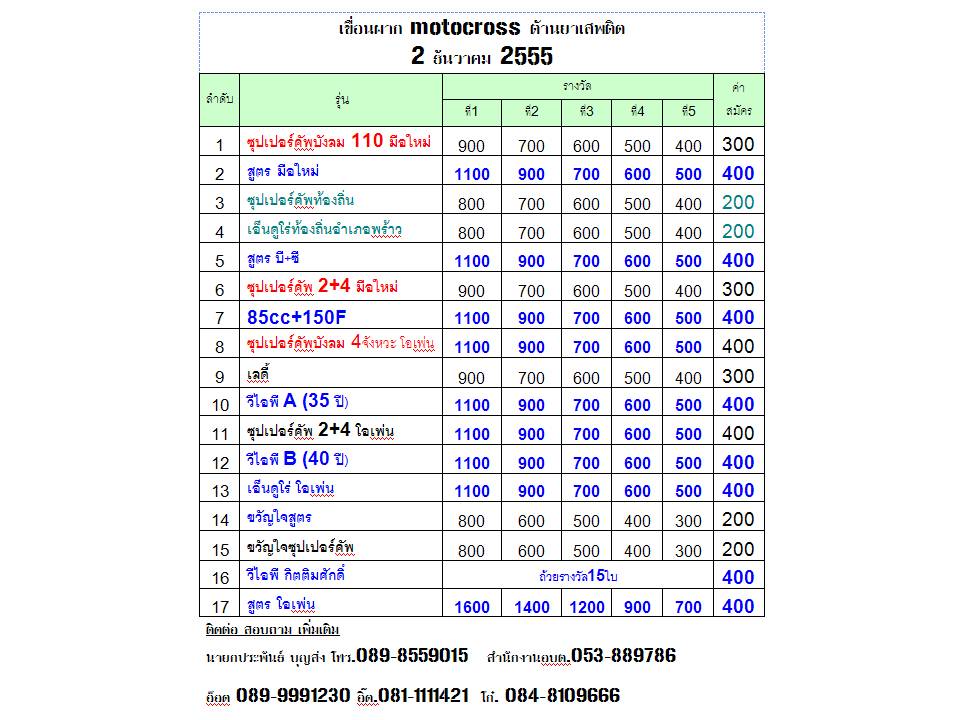 เรียนเชิญนักแข่งทุกท่าน มาร่วมงานที่ อ.พร้าว วันที่ 2 ธันวาคม 2555