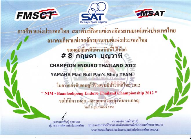 19:30-21:00 น. พิธีมอมรางวัลแชมป์เอนดูโร่ประจำปี 2012/2555