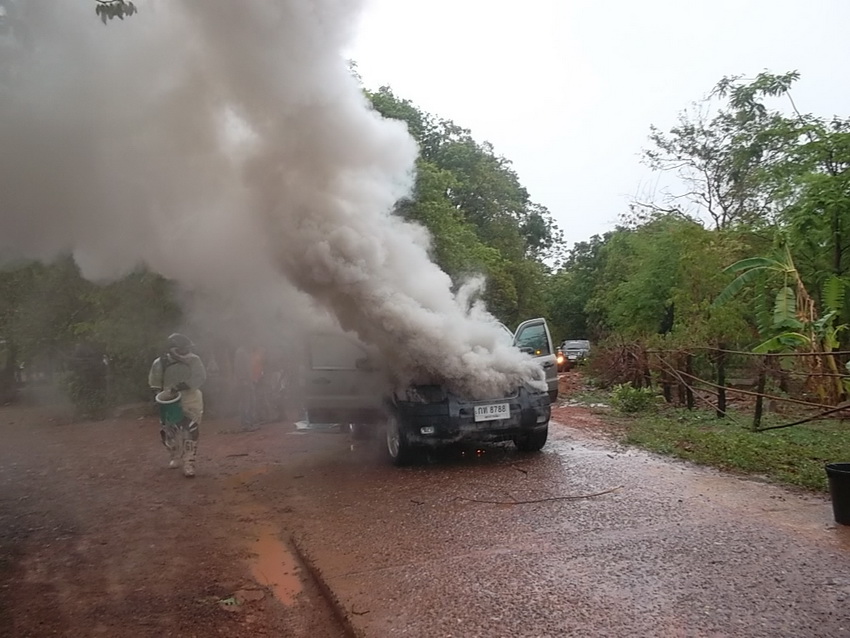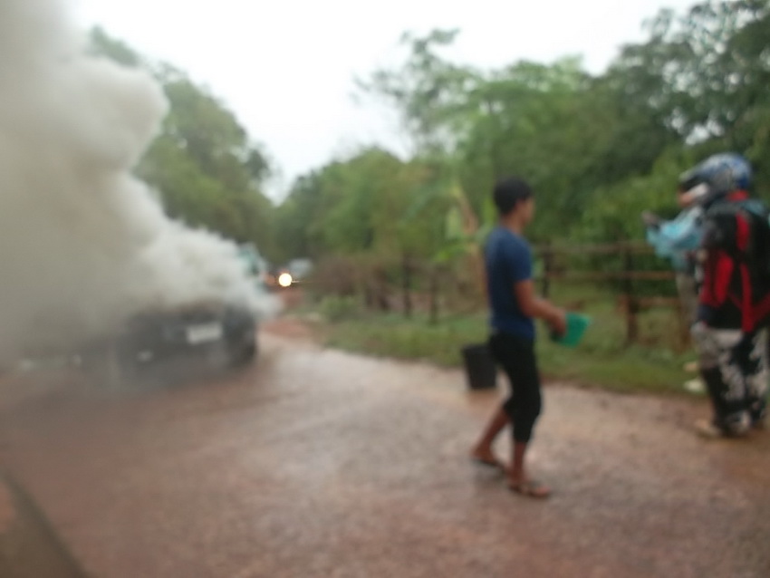 ครั้งแรก ที่เห็น ดูแล้ว เหมือน ชาวบ้าน ที่มุงดูเหตุการณ์อยู่ "ห่าง ๆ" จริง ๆ ครับ ห่างจริง ๆ เท่าที่เห็น แถมยังตะโกนบอกอีกต่างหาก........ซึ่งดูเหมือน ทุกคนรวมทั้ง เจ้าของ (ซึ่งไม่รู้ว่าใครและอยู่ตรงใหน? เพราะไม่มีใครอยู่ใกล้รถเลย!) จะถอดใจปล่อยให้ใหม้ไปตามบุญ ตามกรรมแล้ว............