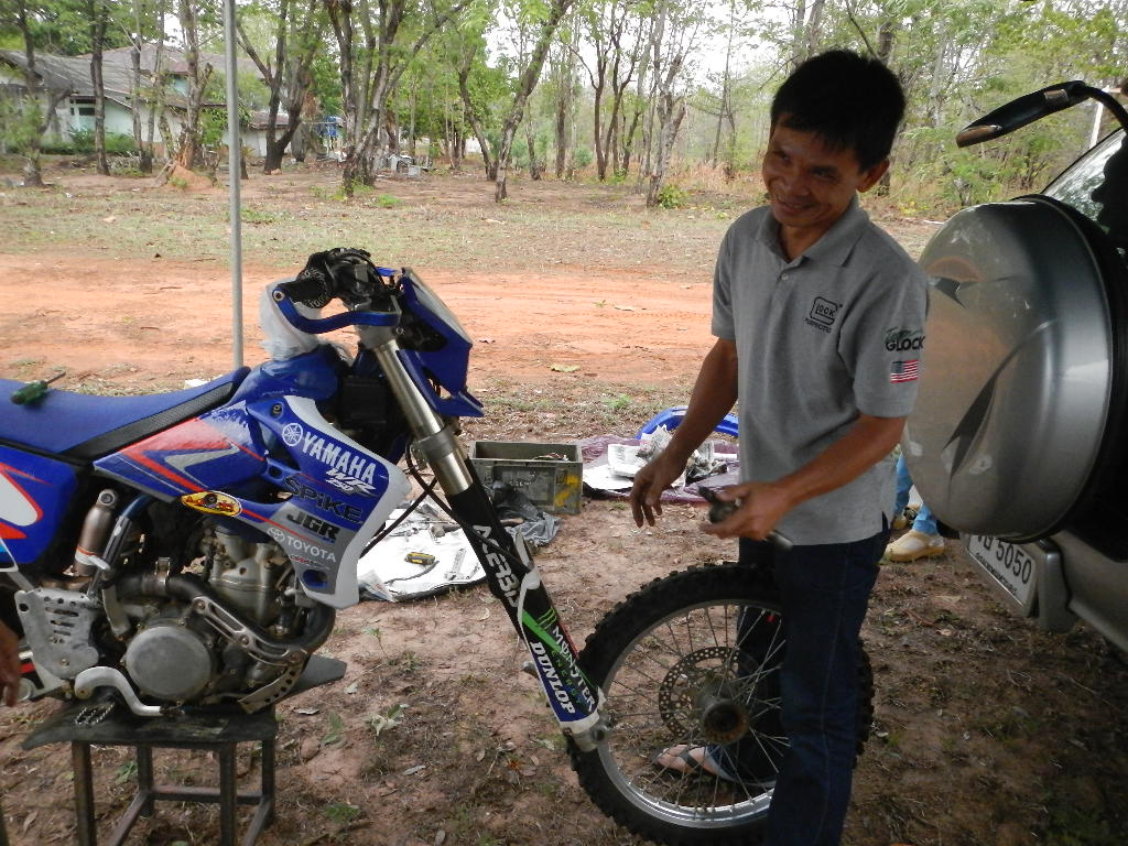 เดินไปเดินมา ก็ได้เจอกับ น้าต้าร์ หนึ่งใน ดาราของทีม พิษณุโลก ครับเลยบแวะเข้าไปทักทาย และขอถ่ายภาพฯ คิดว่าจะขอดมควัน KTM ซักกะหน่อย แต่ หลังจากเห็น เต็ม ๆ แป๊บเดียว หลังจากออกตัว เอส 2. แล้ว ไม่รู้หายไปใหน?..........