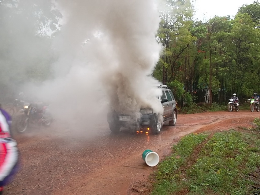 แล้วก็มาถึง ภาพเหตุการณ์ ระทึกขวัญ.................ซึ่งนี่เป็นภาพแรก ที่ ผมบันทึกได้............หลังจาก เริ่มเข้าสู่ ทางดินฯ แล้วขี่มาถึงจุด(เกิดเหตุ) ที่รถยนต์ คันนี้ "ไฟใหม้"