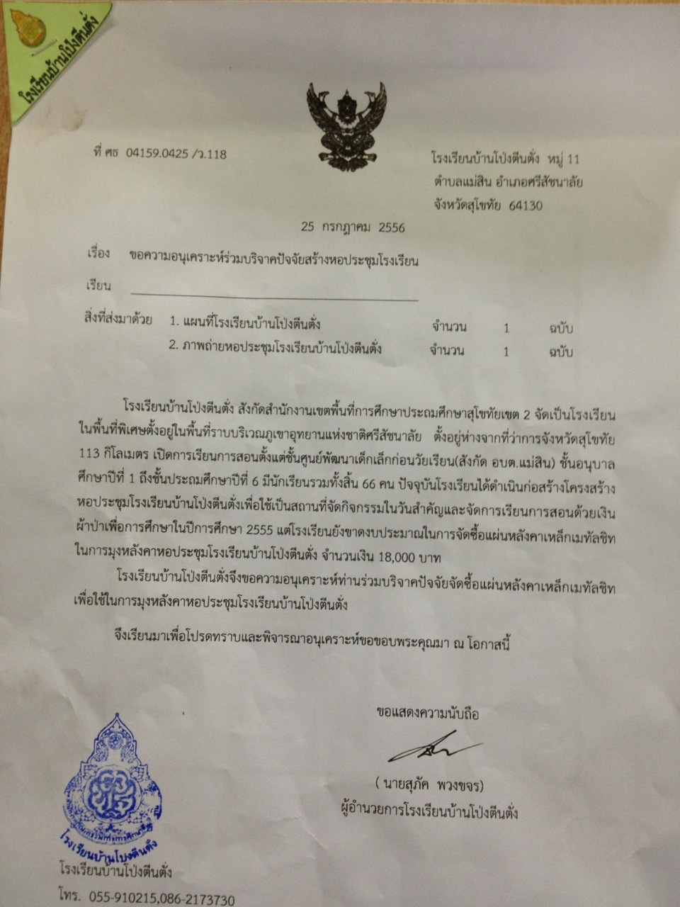 เนื่องด้วย ทางโรงเรียนบ้านโป่งตีนตั่ง อ.ศรีสัชนาลัย จ.สุโขทัย กำลังสร้างอาคารเรียน ซึ่งกำลังจะแล้วเสร็จ ยังขาดหลังคา จึงใคร่ขอความอณุเคราะห์ เพื่อนทางฝุ่น ร่วมด้วยช่วยกันบริจาค จตุปัจจัยคนละเล็กละน้อยตามกำลังศรัธธา สร้างหลังคาให้น้อง โดยเราจะไปบริจาคกันวันที่ 15 ก.ย นี้..เป็นทริบ บุกป่าเพื่อน้อง..083-5183118 โต้ง ศรีสัช 081-1808818 บี ครับ หรือไม่สะดวกมา จะโอนสมทบเข้าบัญชีด้านล่างก็ใด้ครับ ทุกบาททุกสตางค์ เข้าโรงเรียนแน่นอน..
