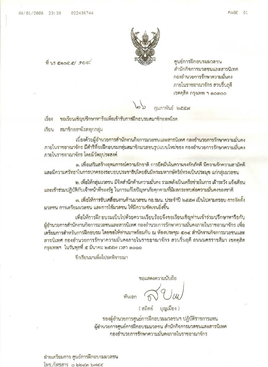 เพิ่งได้รับเอกสารเชิญชวนเพื่อสมาชิกออฟโรดทุกกลุ่มซึ่งรวมถึงเอ็นดูโร่ด้วย เชิญชวนเข้าร่วมประชุมที่ กอ.รมน. สวนรื่นฯ วันที่5 มี.ค. 2557 เวลา9.30น. ท่านที่อยู่ใกล้ๆขิเชิญร่วมประชุมด้วยครับ ผมในนามผู้ดูแล(ยังไม่ยอมปลดอีก) ได้รับการติดต่อให้เข้าร่วมด้วย ปฎิเสธไม่ได้พรุ่งนี้จะเข้าร่วมประชุมเพียง1ท่าน ท่านใดว่างอยู่ใกล้ๆขอเชิญเข้าร่วมรับฟังได้ครับ โดยPrintฉบับนี้ แล้วยื่นให้ทหารเวรหน้าประตูที่สำนักงาน กอ.รมน.ได้เลยนะครับ เข้าร่วมประชุมพร้อมกับออฟโรดกลุ่มต่างๆด้วยครับ