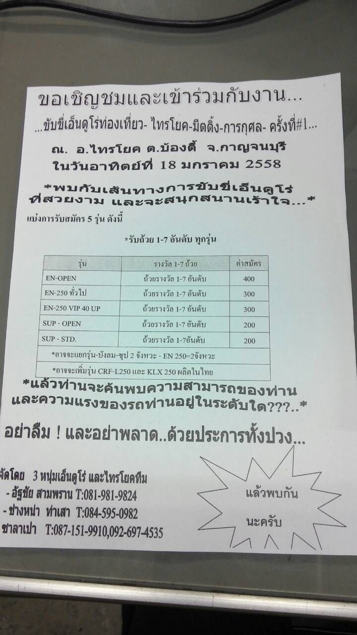 ประกาศ.....พี่น้องเอ็นดูโร่ทุกท่าน