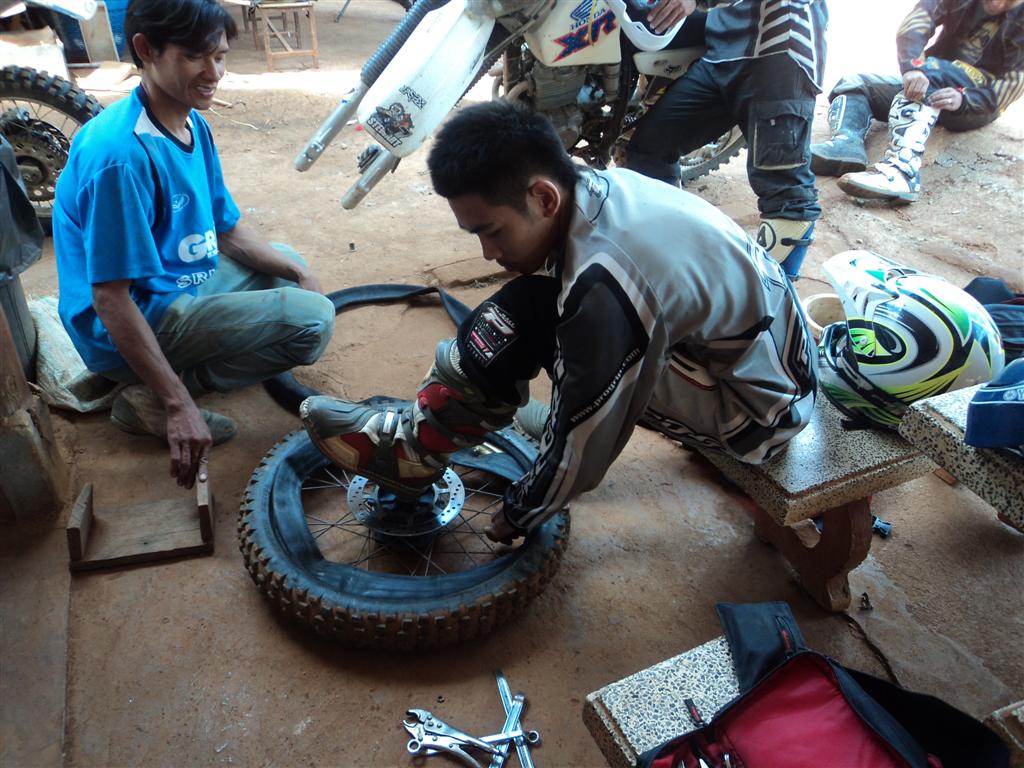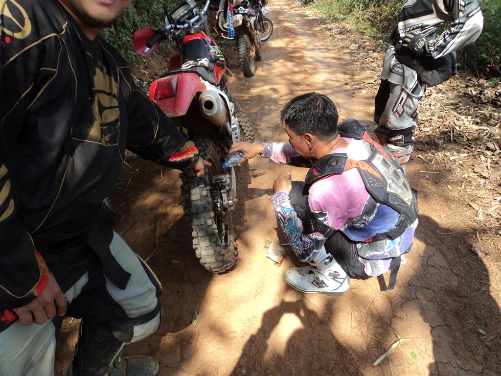 ระหว่างหยุดกินข้าวกันรถเฮียกิ๊บมีปันหานิดหน่อยยางหน้าแตกขี้แรงไป