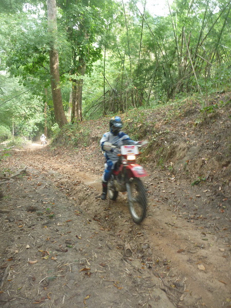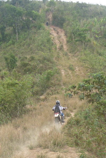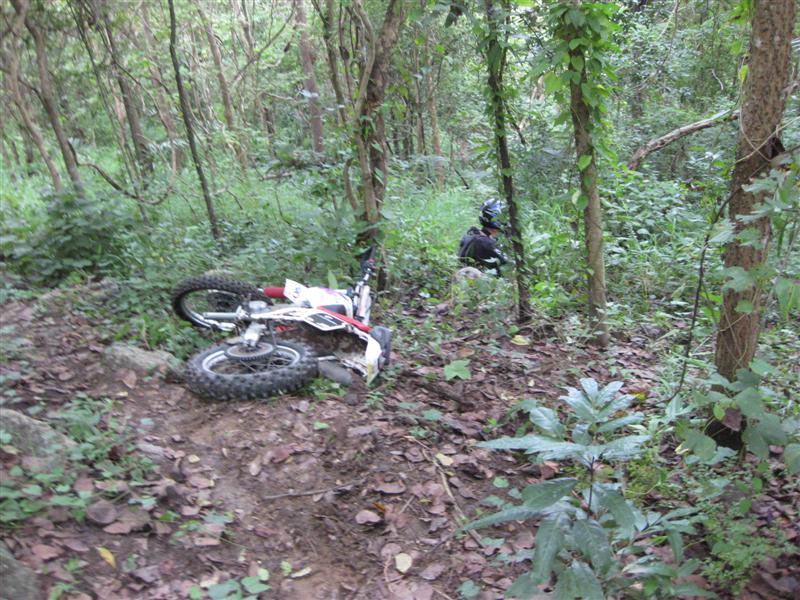 ยังไม่เข็ดกันอีกหรือครับพี่แมน,พี่วิโรจน์ ไปทริปนี้แบบแถมบังคับผมอีกแล้ว แต่ผมยังใจสู้ แม้หัวเข่าขวายังบวมจากการล้มบนทางหนังหมูจนเกราะเข่าข้างขวาหัก เข่าบวมไม่หาย แต่ผมก็ไปได้ ใจผมเกินร้อยอยู่แล้วครับ ทริปนี้เริ่มจากร้านอาหารหมอชู หนองพังตรุ ท่าม่วง กาญจนบุรีแล้วออกทางหลังเขาเข้าไร่kc-กองผสมพันธ์สัตว์-รางสาลี่-ยางเกาะ-ด่านมะขามเตี๊ย-ท่าพุ-ไทรทอง-ฝายน้ำล้นเขาเขียว-ไร่กำนันเซี๊ย-เหมืองวัฒนา-เลียบชายแดนพม่าบ้านพุม่วง อำเภอด่านมะขามเตี๊ย กาญจนบุรี-ศูนย์อพยพถถ้ำหิน อำเภอสวนผึ้ง ราชบุรี-เขากระโจม-สวนผึ้ง-ชัฎป่าหวาย-อำเภอจอมบึง-หนองกวาง-หนองตากยา อำเภอท่าม่วง กาญจนบุรี-หนองเป็ด-เขาคันหอก-ร้านอาหารหมอชู