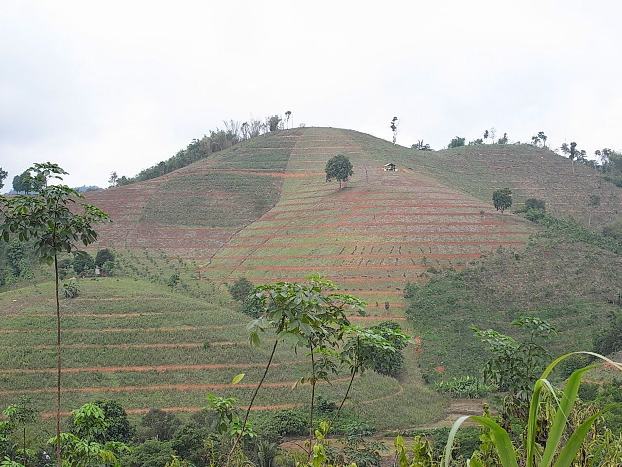 คือเข้าไปทำแนวให้ปลูกแฝกกันดินพังทลาย และปลูกไม้ยืนต้น และทำไร่ ไปด้วย