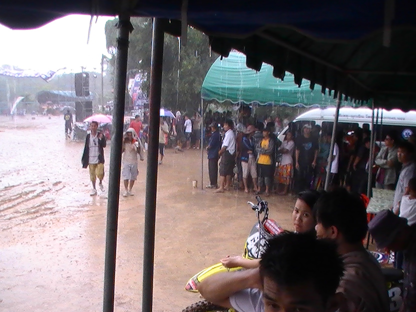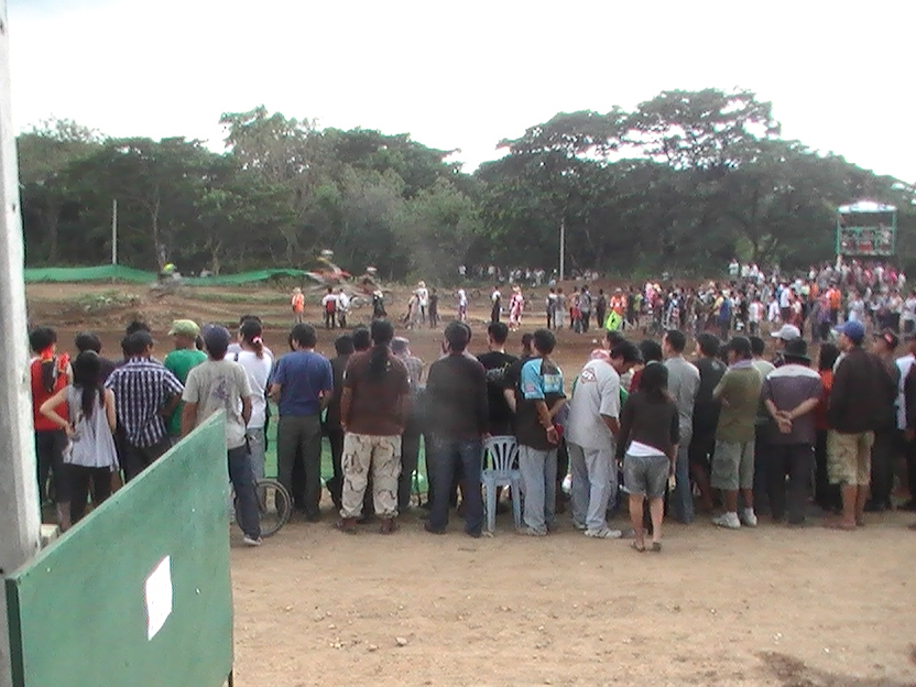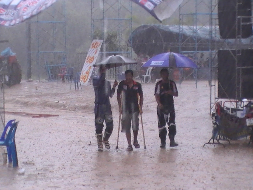 นี่ก็บรรยากาศยามค่ำครับ ผู้คนไม่ยอมหนีกันเลยแม้ฝนจะตั้งเค้ามาคลุมสนามจนมืด และที่สุดก็ถล่มลงมาช่วงการแข่งขันรอบที่ 12 ทำเอาหลายท่านผิดหวังที่กำลังชมนักแข่งฟิลิปปินส์ที่ถูกเจ้าตาโต วุฒิพงษ์ อริยะเครือไล่กวดอย่างสนุกสนาน