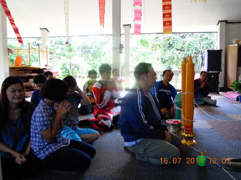 ได้บูญเต็มๆ เอาเทียนโขกหัวตัวเองซะงั้น