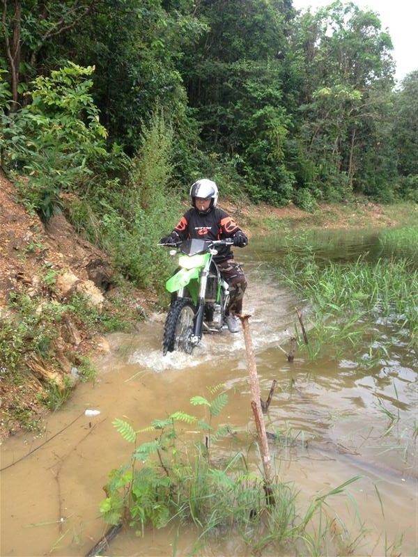 เิ่ริ่มทดสอบสภาพเส้นทาง เขาบอก klx 250 เจอน้ำไม่ได้ จากการทดสอบ ผ่านฉลุย ไม่มีอาการสะดุดแต่อย่างใดครับ