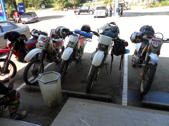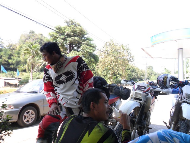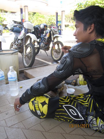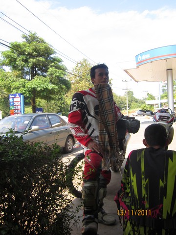 แดดร้อนเปรี้ยง....เดี๋ยวไปอัดน้ำมันหาอะไรเย็นกินกันที่ปั๊ม ปตท.ทองผาภูมิ แล้ววิ่งตัดกลับทางแพพี่แต่ง กันดีกว่าเพราะวิ่งทางดำยาวๆเดี๋ยวแม่มก้อพลานง่วงกันอีก....