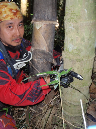 อ๋อ...ต้นไผ่เองครับ นี่ต้นยังเล็กกว่าข้างในเยอะครับ ข้างในใหญ่กว่านี้เกือยเท่าตัว เทียบกับหัวพี่นิดครับ