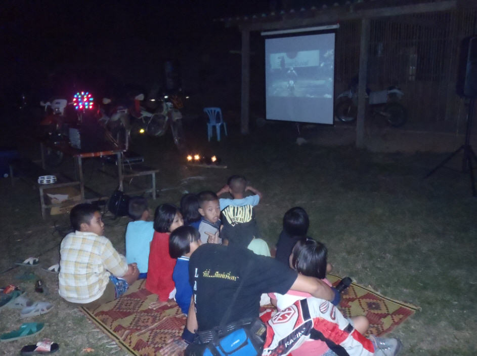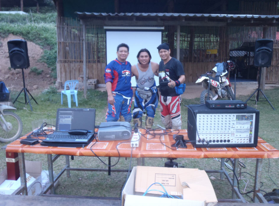 ก่อนค่ำป๋าต้องขออณุญาติชาวบ้านทดสอบเสียงของพวกเราก่อนครับ