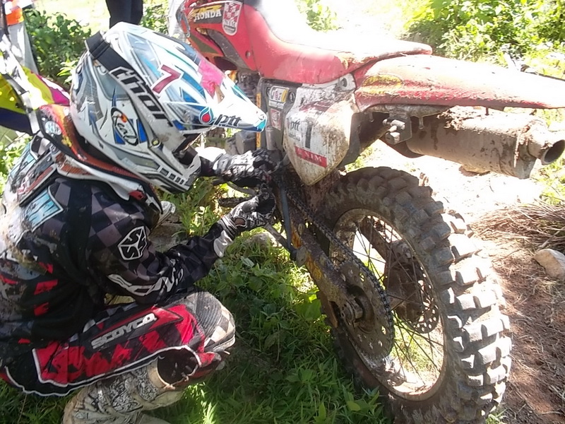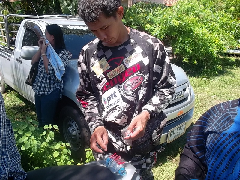 และตรงจุดนี้.........เจ้ายางในฯ ที่ตัดไว้เป็นเส้นฯ ใส่ ไว้ในกระเป๋าคาดเอวรวมกับเครื่องมือ ก็ได้เป็น ผู้ช่วย พระเอก ช่วยนักแข่ง ( รู้สึกจะมาจากเหนือ) ผูกยึด ขาตั้งที่สปริงหลุดหาย...( อันตรายมากขณะแข่งขัน) นับว่าไม่หนักเปล่า ที่เราพกมา อิ อิ .......