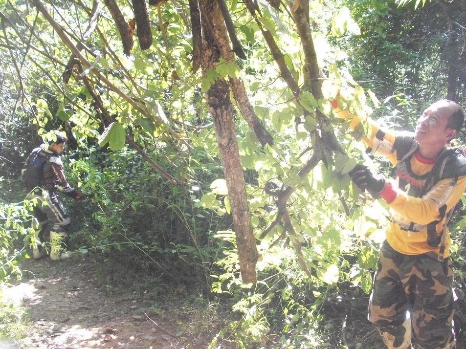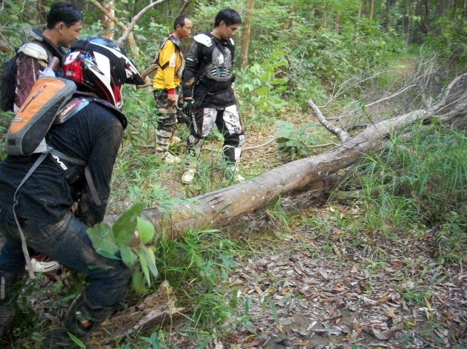 จะทดสอบเส้นทางที่มีกิ่งไม้ใหญ่ขวาง ถ้าไปลำบากเราจะทำการฟันให้เรียบ