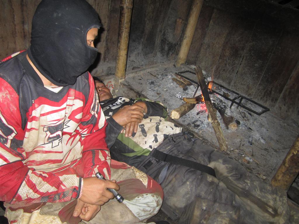 ต้องลุกขึ้นไปเอาเสื้อผ้าเก่าๆที่ใส่ลุยโคลนมาทั้งวันมาใส่นอน