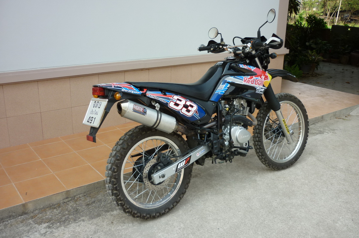 หน้ากาก+ไฟหน้า รถผมใช้ของ KLX 125 ครับ อะไหล่แต่งอื่น ๆ ใส่ได้ทั้งนั้นแหละครับ อยู่ที่การดัดแปลงติดตั้ง ที่ผมเลือกของ KLX เพราะต้องการอะไหล่แท้ ซึ่งจะทำให้ได้คุณภาพแสงไฟหน้าที่ดีกว่า อาจจะแพงขึ้นอีกสักหน่อย บังโคลนหน้าใช้ของ MTX เหลาแต่งปลายบังโคลนให้ดูเรียวขึ้น