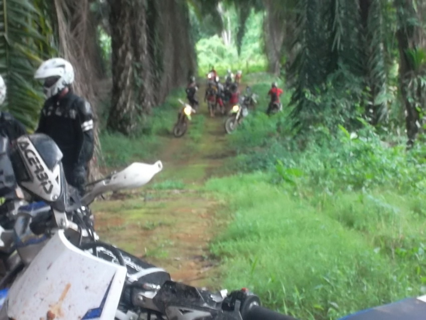 หลังจาก พาลัดเลาะ มาตามทาง ในสวนปาล์ม ที่เป็นร่องน้ำ หินลอย และ ดินลื่น(หนังหมู) มาพอประมาณ.......ก็เลยขอความเห็น กับน้าวิทย์ สีลมฯ หนึ่งในกลุ่ม หาดใหญ่ฯ เรื่องเส้นทาง ที่จะไปต่อข้างหน้า จนน้าแกตอบตกลง!.......จากนั้นจึงอธิบายคร่าว ๆ เรื่องเส้นทางฯ...........จากนั้นจึงหักเลี้ยวขึ้น ควนฯ (ภูเขา) ลูกแรกทันที................ หลังจาก ชุดหน้าประมาณ 4 - 5 คันขึ้นมาถึงจุด พักรถฯ จึงรีบลงมาดูเหตุการณ์ ทันที...........ผลก็เป็นดังในภาพ...........