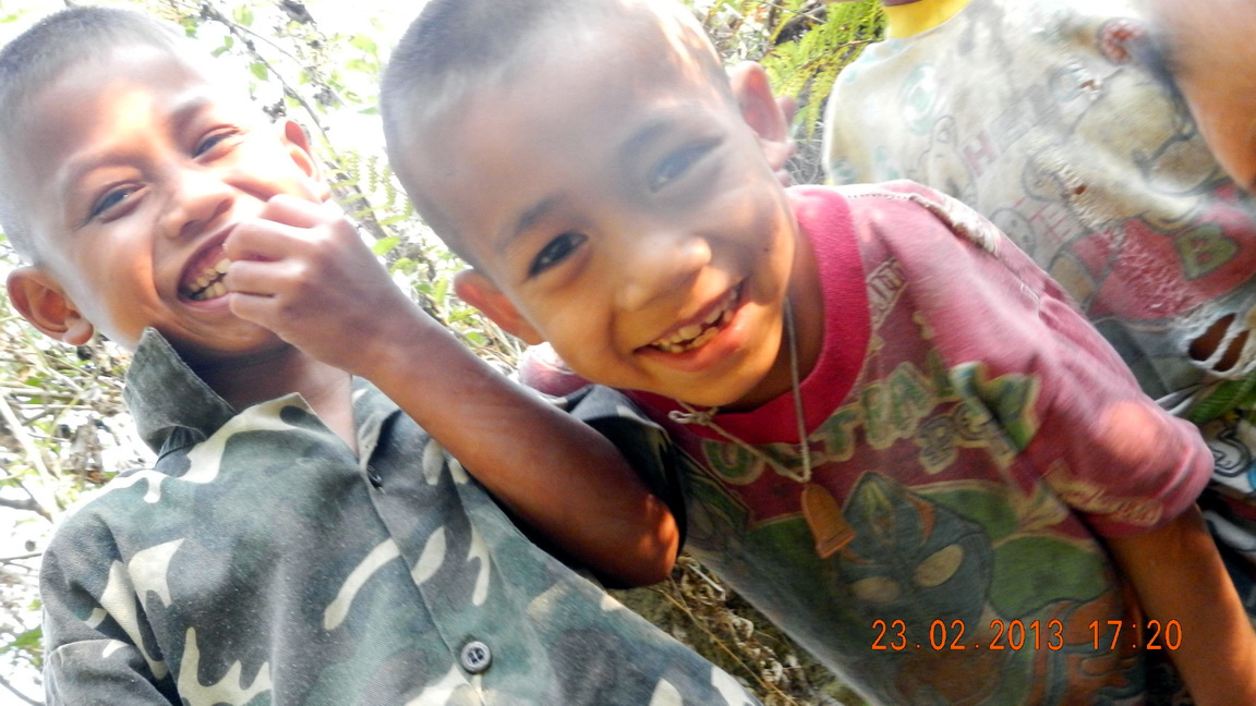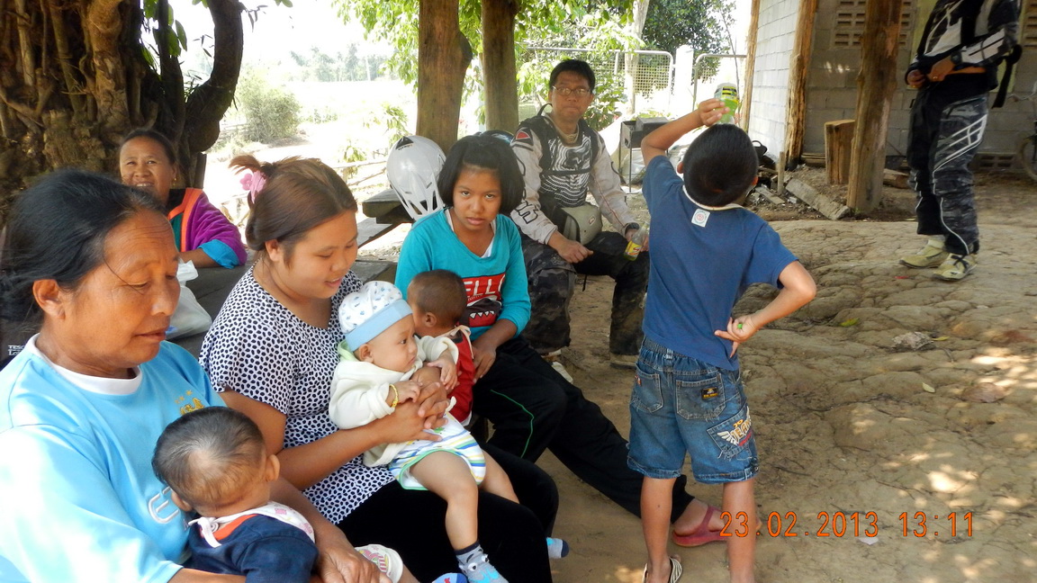 ถึงหมู่บ้านชาวกะเหรี่ยง หมู่บ้านแรกจำชื่อไม่ได้ เด็กๆ ที่นั่นคงจะงงว่า พี่เทิดจะชูนิ้วทำไม