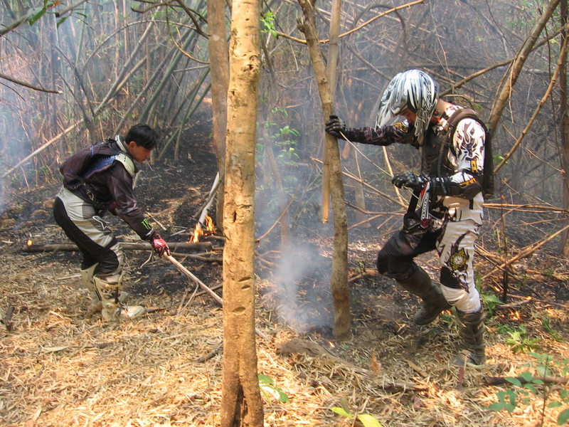 หน่วยดับเพลิงชุดเเรกไปถึงช่วยกันดับไฟป่าทันที่