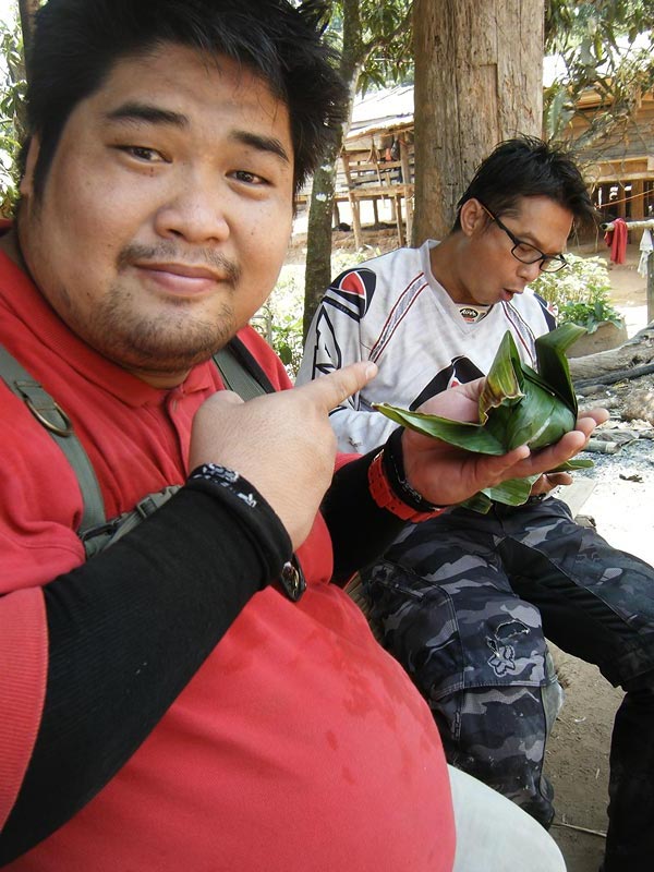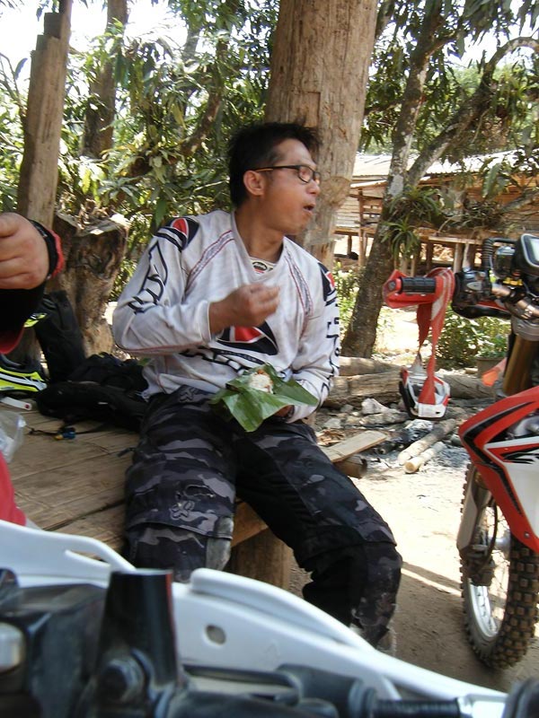 ทีมงานตาก ต้อนรับอย่างดี ฝากข้าวเหนียวหมูทอดไปกินกันระหว่างทางด้วย กลัวนักบิดหิว
