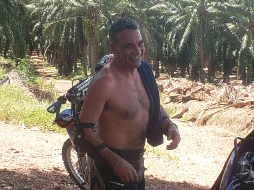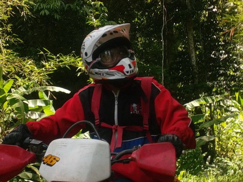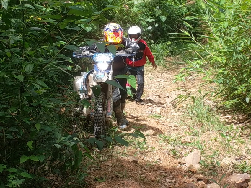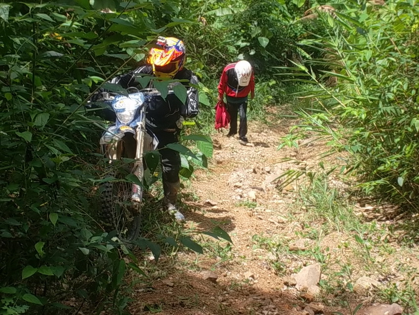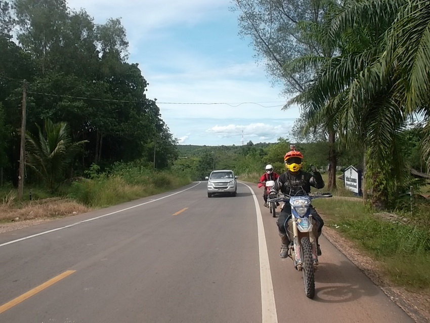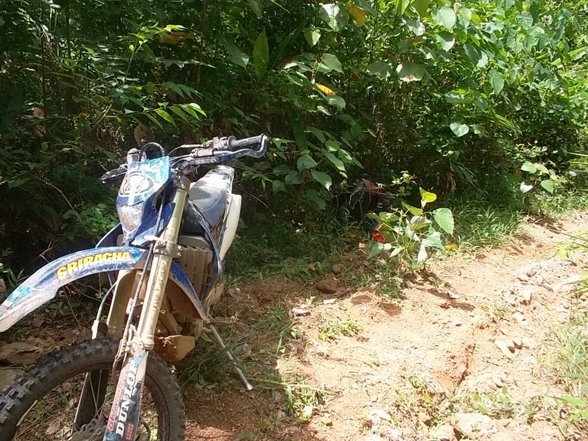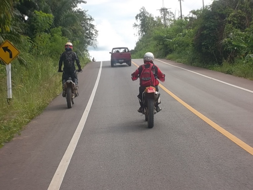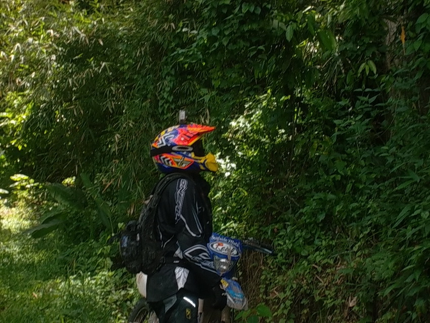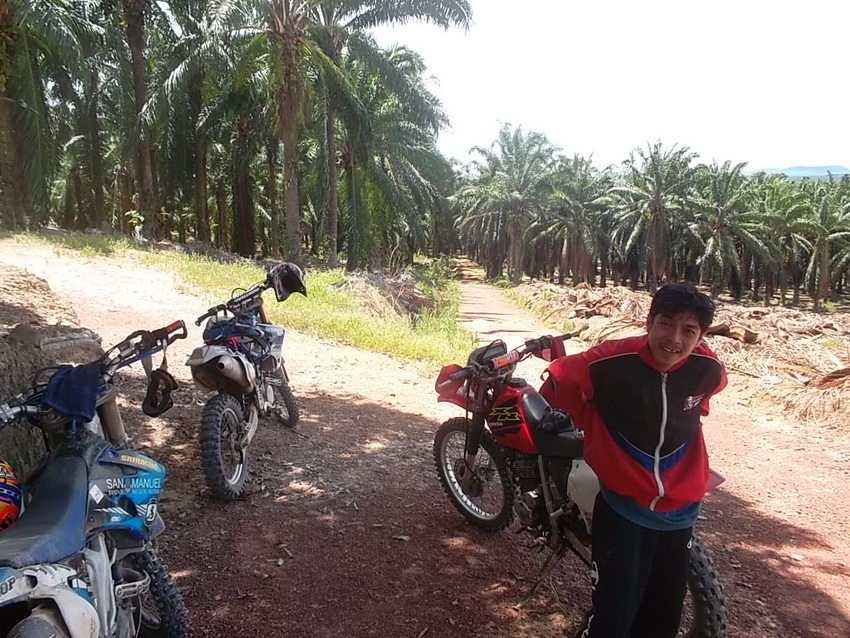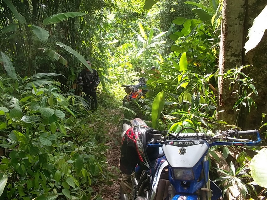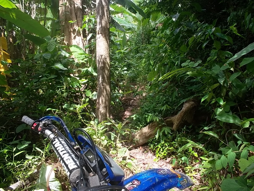 ขออภัยที่ขาดตอน.............จากเรื่องเสียงปืนดัง!........จากภาพข้างบนฯ ก่อนที่เจฟฯ และดอนทางเรียบฯ จะกลับมาจาก ไปดู ลานหินฯ ที่ถล่มลงมาฯ ก็มีวัยรุ่น ขี่ฮอนด้า เวฟ ไปตามทางฯก่อนหน้า แล้วหลังจากนั้น.......ก็มีเสียงปืนดัง! สอง - สาม นัด แต่ ก้ไม่ได้ให้ ความสนใจ อีกอย่าง สองคน คือเจฟฯกับดอนฯ ก็คงไม่ได้ยิน เพราะขี่รถอยู่.................ต่อเมื่อ ขี่ รถกันมาตามทาง ใหม่๋ ที่ขึ้นเนิน มาเรื่อย ๆ............คนนำ อย่างผน ก็เหลือบ ไปเห็น วัยรุ่น ผู้ชาย ประมาณ 2 - 3 คน พากันวิ่ง หลบ เข้าป่าไปอย่าง ไว!.....จากที่โล่ง ซึ่ง กำลัง ปลูก กล้ายาง และสงสัยว่า จะเอาปืนฯ มาลองกัน...............โดยพวกเรา ทำเป็น ไม่เห็น และ ขี่รถฯ ต่อมาตามเส้นทางฯ จนมาพบกัน เส้นทาง ที่มีไม้ ล้มขวางอยู่ และรกสุดกำลัง............
