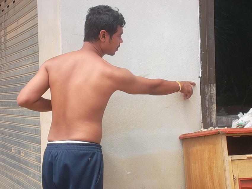 หันมาข้างหลัง จุดที่จอดฯ ถ่ายภาพฯ เห็นชาวบ้าน เลยสอบถาม สภาพน้ำท้วมฯ ในช่วงนั้น น้าฯแกเลยชี้ แนวระดับน้ำ ให้ดูจาก คราบ น้ำ ที่หน้าต่าง ข้างบ้านให้ดู.................นึกแล้วเสียว สันหลังแทนฯ ดูแล้ว ยังดี ที่ บ้านแกฯ ปลูกอยู่ บริเวณ คุ้งน้ำ ในระดับสูง แถมมี เนินดิน บังอยู่.............ยังโดนขนาดนี้ แล้วชาวบ้าน ที่ปลูก บ้านชั้นเดียว แล้วอยู่ ระดับต่ำ ใกล้ น้ำ จะไปเหลืออะไร???......