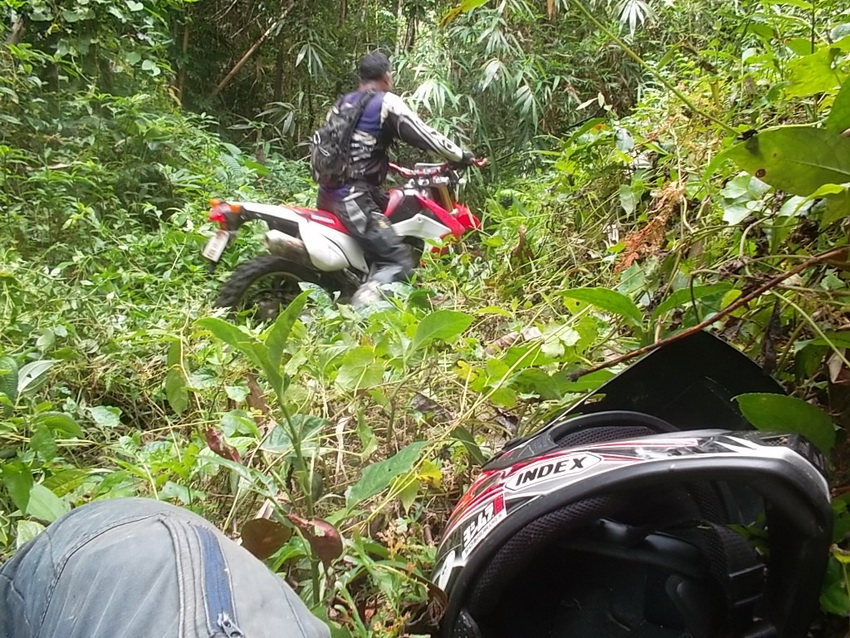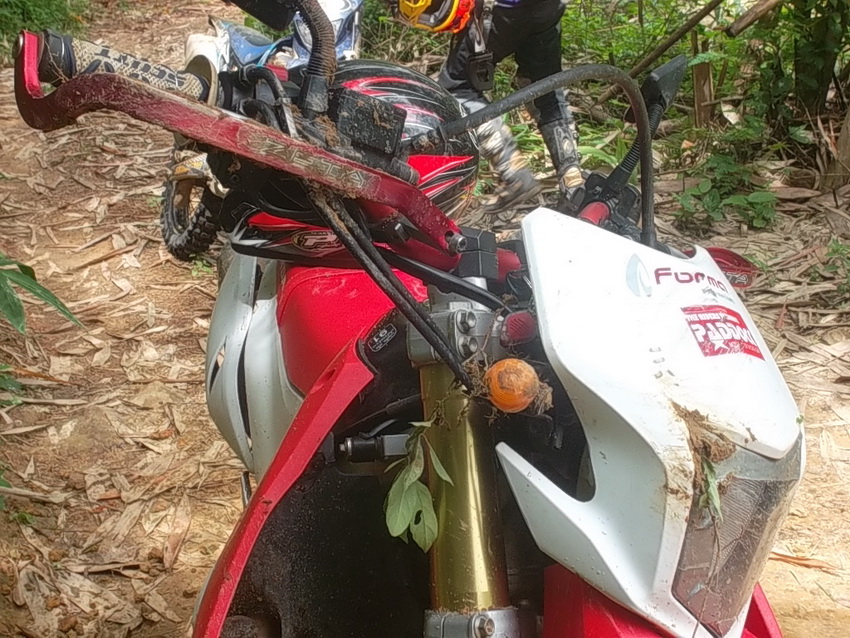 พวกขาซ่า ๆ คงพอเข้าใจ แหละ นะครับ ก็ "ประมาท" ไปนิด เล่นมากไปหน่อย!........ตามประสา คันแรก ที่เป็นคนนำฯ ..........จากการวิเคราะห์ ขอผิดพลาด นึกย้อน จากเหตุ การณ์ (ซึ่งขณะนั้น มีสติ และรับรู้ เกือบทุกเสี้ยววินาที) เป็นการไล่กันฯ ลงมาที่ลำห้วย ด้วยความเร็ว........(แว๊บแรกตาต้องมองสำรวจ ก้อนหินฯ ในลำห้วย เพื่อความปลอดภัย) แล้วมองไปที่ขอบฝั่ง ตั้งใจจะเปิด ให้ล้อหน้า แค่พอลอยฯ แต่ ให้บังเอิญ ที่ น่าจะมาแรง ไปหน่อย (เหมือนรู้สึกว่า รอบฯจะมากว่าที่คิดฯ หรือมือเปิดฯเกินก็เหลือจะเดาฯ) มันลอยขึ้นไปทั้งลำฯ และให้ บังเอิญ ว่า ทางฯต่อจากฝั่งห้วย เป็นทางหักเลี้ยวซ้าย ไม่ใช่ ทางตรง!.............แต่ด้วย สัญชาตณาน ทำให้ พยายาม เบี่ยงตัว ช่วย บาลาทซ์ ไปทางซ้าย............จังหวะนี้แหละ ที่ รู้แล้วว่า พลาดเข้าให้แล้ว!.............ด้วยความที่น้ำหนักมาก และ โช๊คหน้าติดรถ ที่แค่ พออาศัย รถก็พุ่งเข้ากระแทก เนินดิน และไถล ไปพิง เนินดิน พอดิบพอดี..........