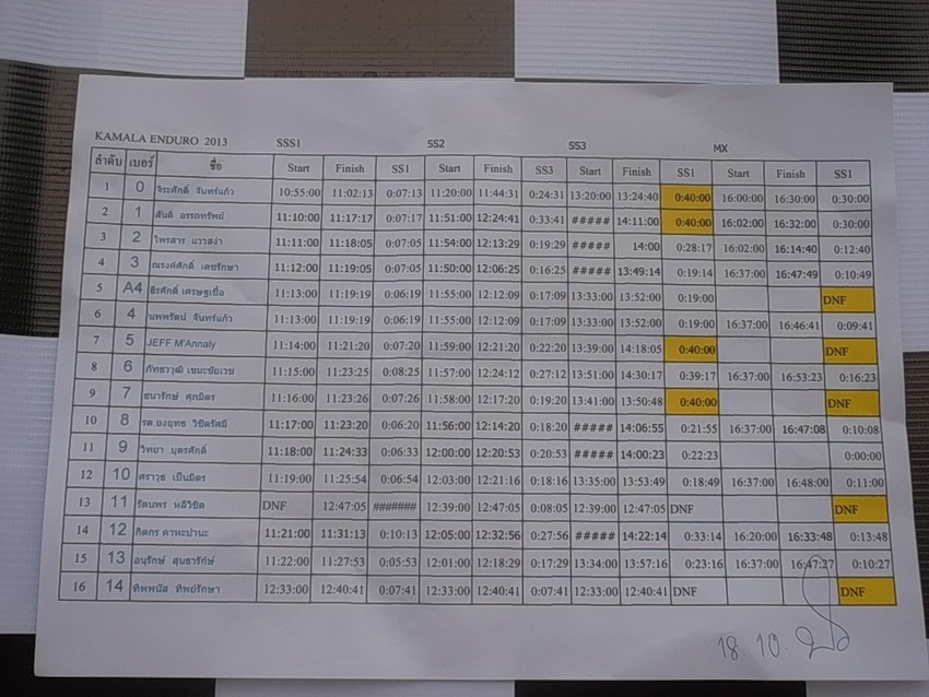 จนแล้วจนรอด ก็รู้ผลฯ เวลาและคะแนน เสียทีฯ เพราะนอกจากจะ เวลาหายฯ ในช่วงแรก และต่อมา ชื่อไปติด อยู่ที่ อันดับ 3 ในรุ่น ซุปเปอร์คัพโอเพ่นฯ (ทั้งที่ใช้ WR 450) แก้ฯจนกระทั้ง มาติดที่ 4 ในรุ่น ซีเนียร์.....เป็นอันว่า ได้ถ้วยกับเขาเหมือนกันครับ หลังจากขับเคี่ยว มากับเขาฯ ทั้งวัน...........