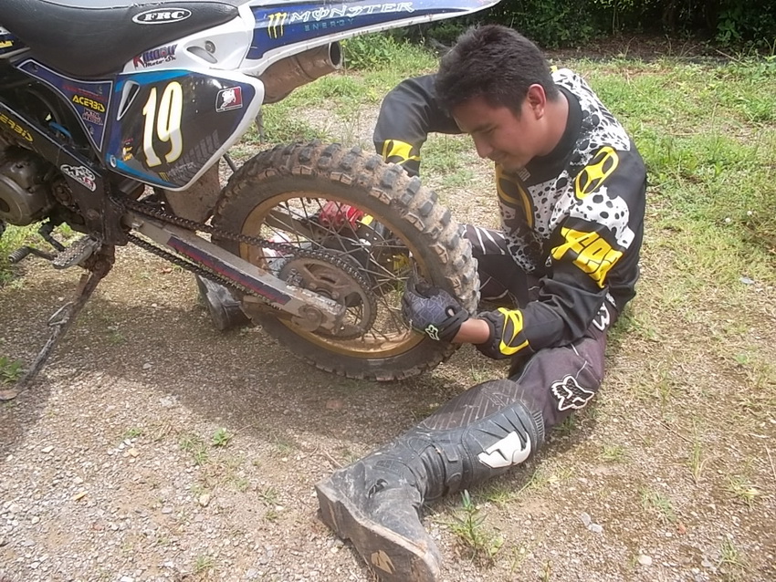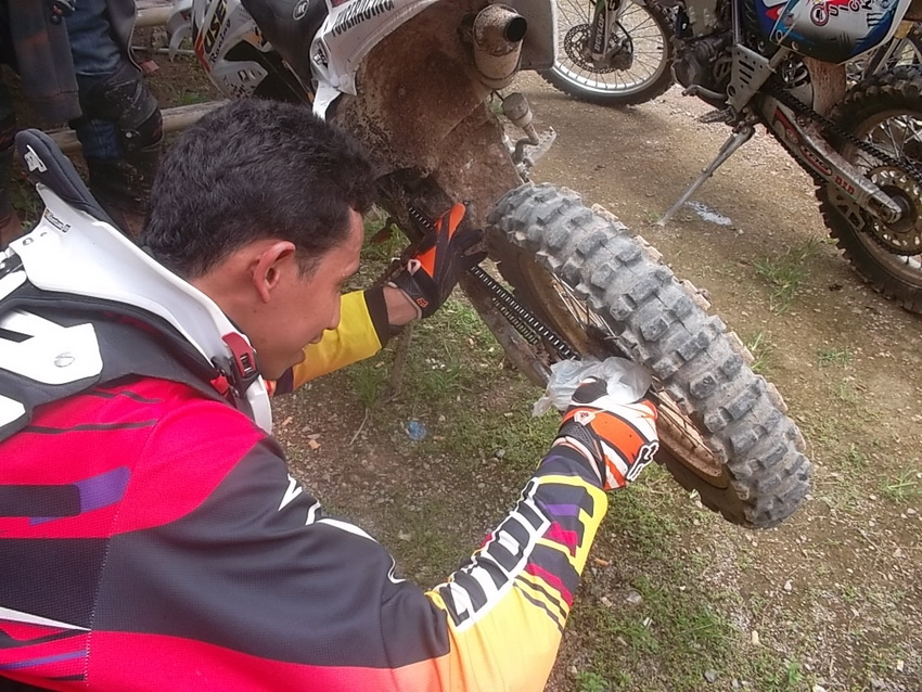 ส่วนเจ้าอู๋ (ขอมั่ง) หลังเห็นผม กุลีกุจอ หยอดน้ำมันหล่อลื่นโซ่ ให้รถตัวเอง และมิสเตอร์ เจฟฯ อยู่......... (ซึ่งถ้าใครไปด้วยกันจะรู้ ว่าผมจะพิถีพิถัน มากเรื่องการ ดูแลหยอด น้ำมันโซ่ เมื่อต้องเดินทางไกล ๆ )