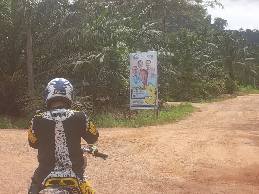 ภาพนี้ จะเห็นว่า มีป้ายโฆษณา หาเสียง ผู้นำท้องถิ่น อย่าง อบต. อยู่ด้วย ซึ่งถ้าสังเกตุ ดี ๆ จะเห็นว่า มีรูป สมาชิก คนสำคัญ ๆ ของ พรรคการเมืองใหญ่ เป็น แบ็คกราว์ อยู่เป็นแผง..........ซึ่ง ก็คงจะเหมือน กันแทบทุกภาค ทั่วประเทศ........ไม่น่าจะเว้น แม้แต่ เรื่อง ที่มา สว. ที่ เถียง ๆ กันในสภาฯ เรื่องความเกี่ยวข้อง ซึ่งไม่น่าจะหลีกเลี่ยงได้เรื่องความเกี่ยวข้อง ไม่ว่าจะ พรรค หรือ พวก ใหน ๆ ซึ่งชาวบ้าน จะเข้าใจได้ดี........( แฮ่ ๆ ออกทะเล หน่อย ๆ อิ อิ ).............