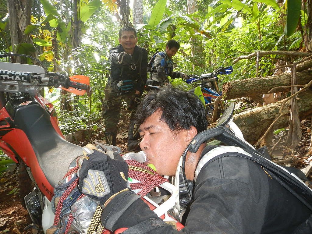 ต้องเสียเวลานั่งซ่อมกันกลางป่าพักใหญ่ โชคดีทีนายทหารกล้าเตรียม Epoxy กาวสองหลอด หรือกาว ติดเหล็กมาด้วย จึงได้ทำการรื้่อออกมาปะ