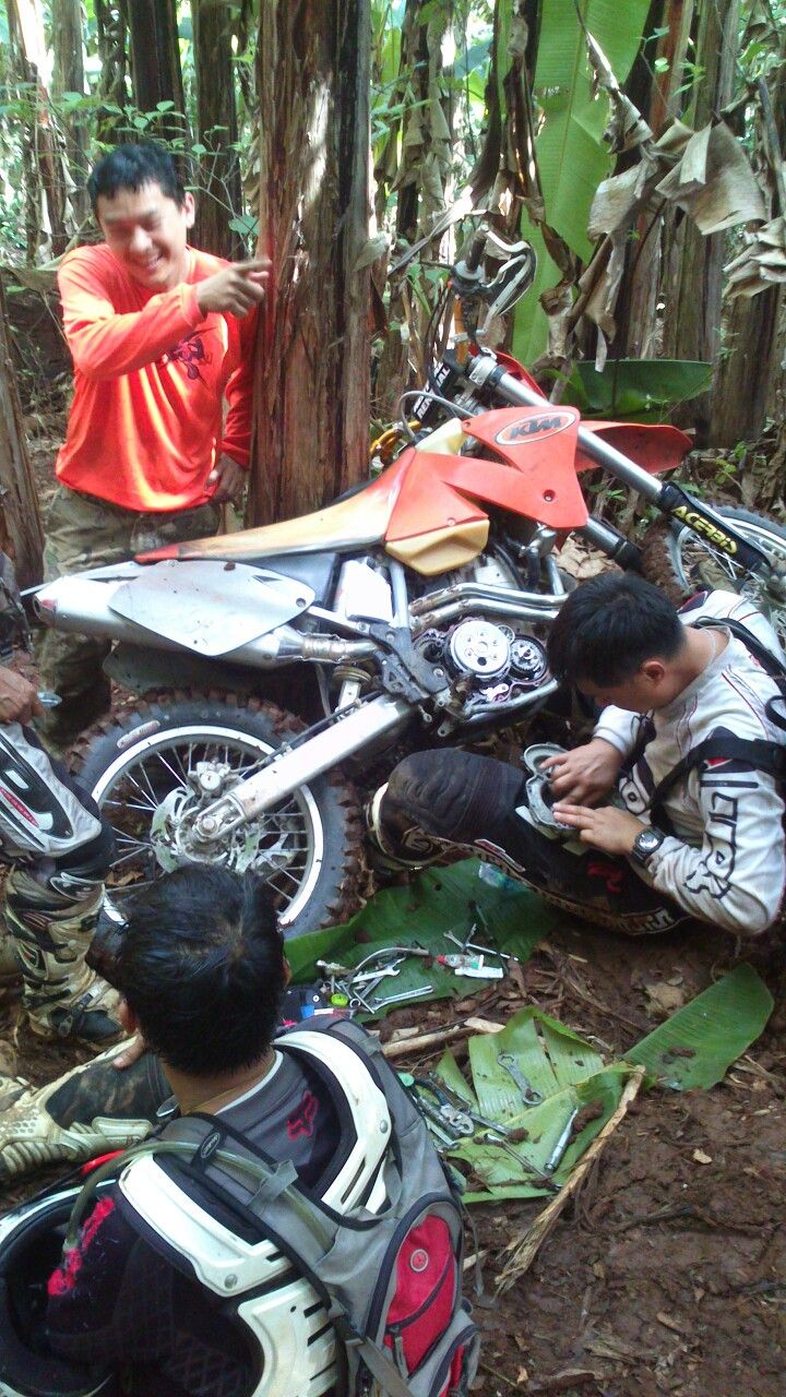 ครับผม...มือกล้องผมมันเอาตัวแทบไม่รอดเลยได้ภาพมานิดเดียว....ในภาพท่านเจ้าสำนักกำลังปลุกเสกเจ้าคาที่เอ็ม400...ความสามารถของท่านเจ้าสำนักไม่ธรรมดา(พิเศษถั่วงอก)ใช้กาวติดเหล็กยอดฝาครอบเครื่องกันน้ำมันรั้ว...จบขี่ได้จบทริป